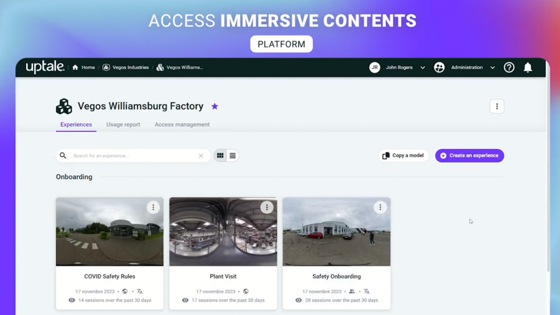 Uptale provides a platform for anyone without a technical background to create, deliver and analyze training experiences in 360°and Virtual Reality in a measurable and scalable way.