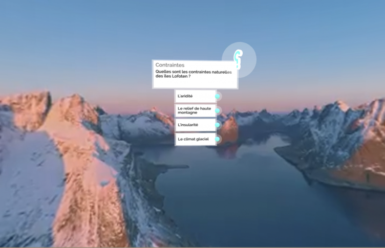 In the example developed here by their History-Geography teacher using the Uptale platform, the students were working on the theme “Living in a highly constrained space: The Lofoten Islands”. To do this, they had to use the documents in the manual and the interactive resource on the headset.